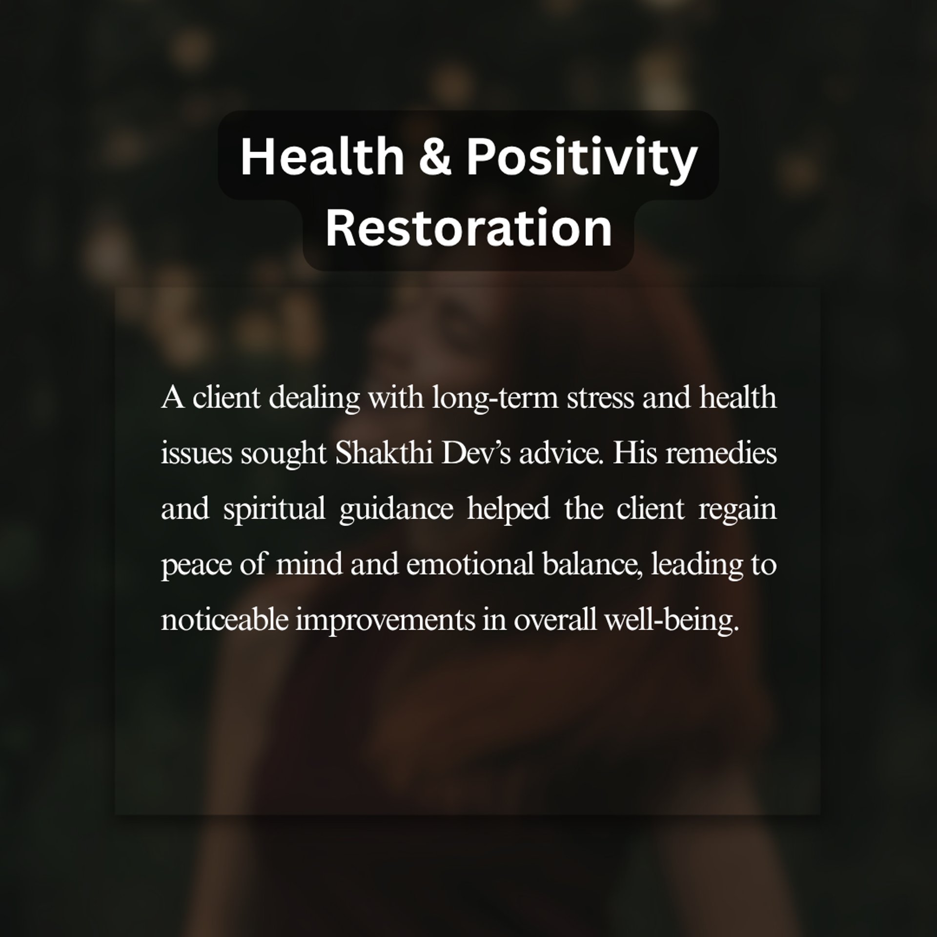 For months, I was struggling with negativity and sleepless nights until I consulted Shakthi Dev. His energy cleansing rituals and advice completely changed my mindset. I now feel lighter, calmer, and more focused on my goals.